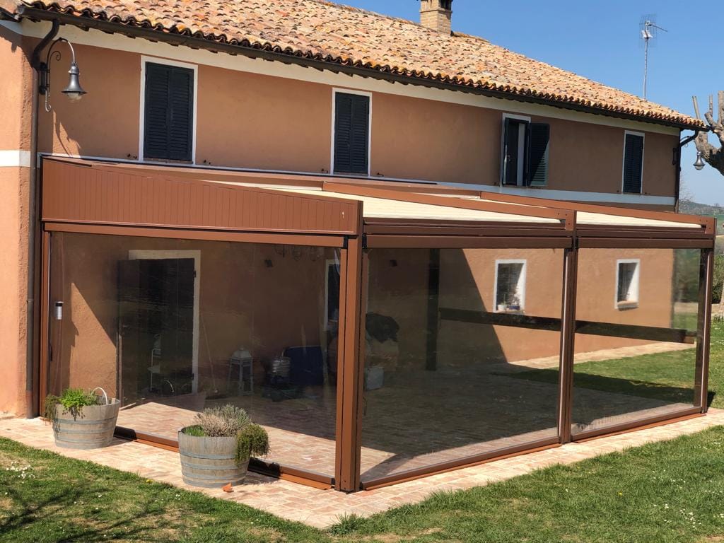 L’infisso è progettato per garantire una vivibilità ottimale in ogni stagione, mentre il carter in lamiera che lo sovrasta unisce estetica e funzionalità, riducendo l’irraggiamento solare e favorendo il contenimento dei consumi energetici.